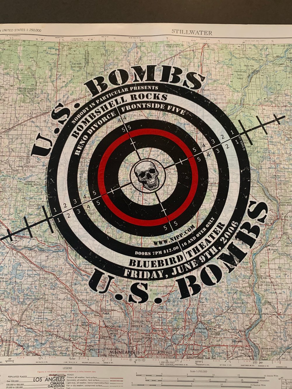 EMEK One Of A Kind US Bombs Silkscreen Concert Poster On Vintage Map Paper #3, Signed 2006