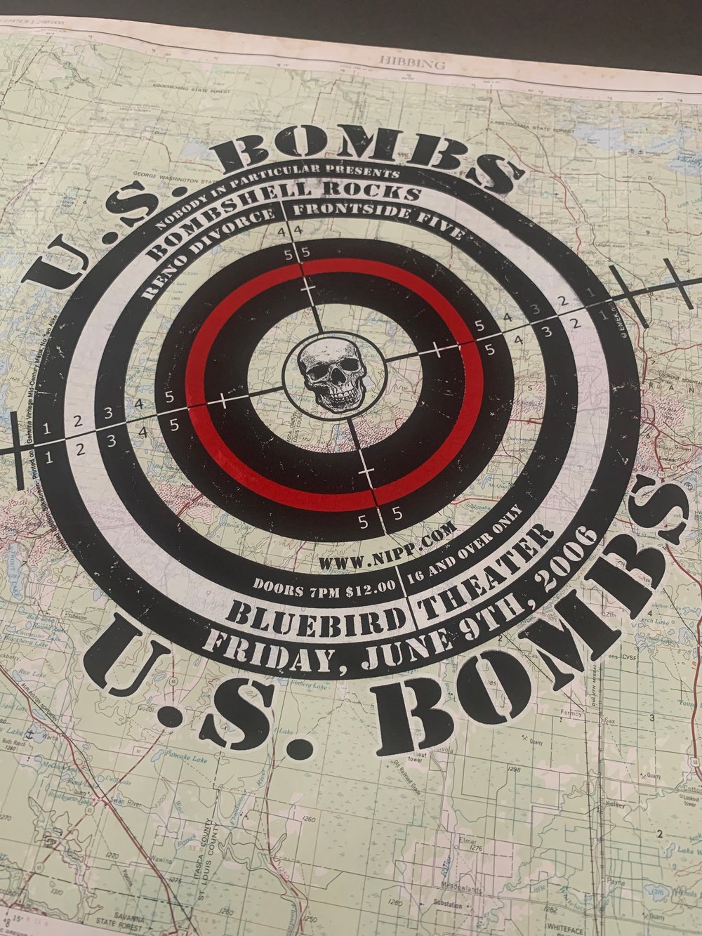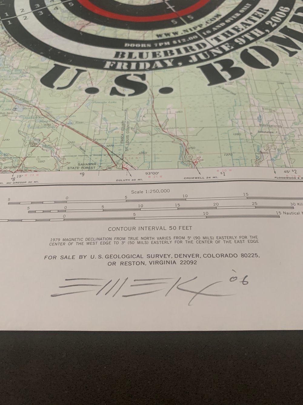 EMEK One Of A Kind US Bombs Silkscreen Concert Poster On Vintage Map Paper #6, Signed 2006