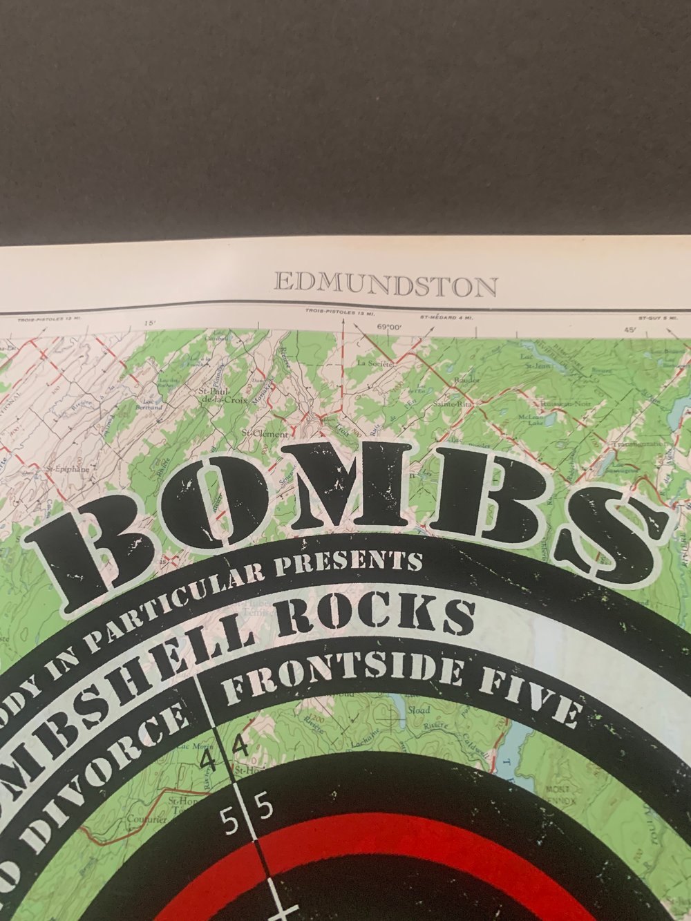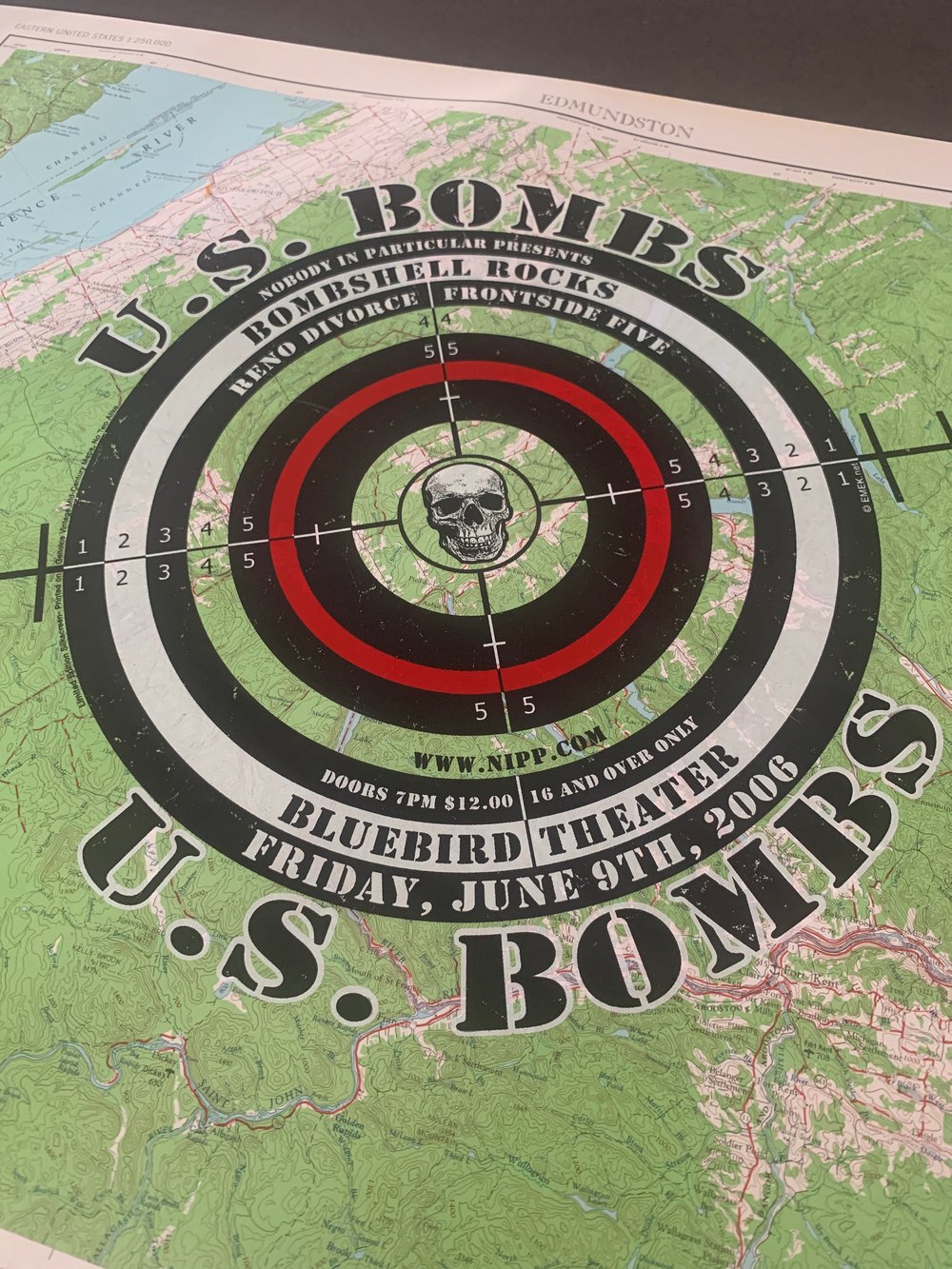 EMEK One Of A Kind US Bombs Silkscreen Concert Poster On Vintage Map Paper #8, Signed 2006