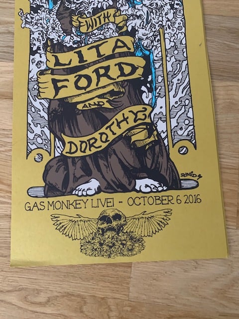 Great design by David Paul Seymour for this show at Gas Monkey in Dallas. Posters will be shipped rolled.