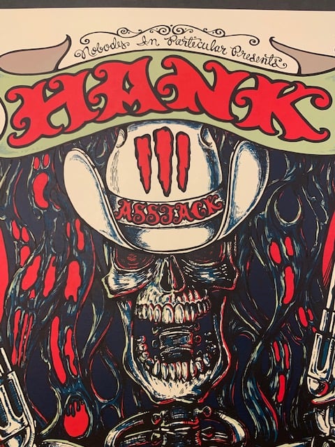 Kick ass Hank III piece, signed + numbered by MMM. Ships rolled.