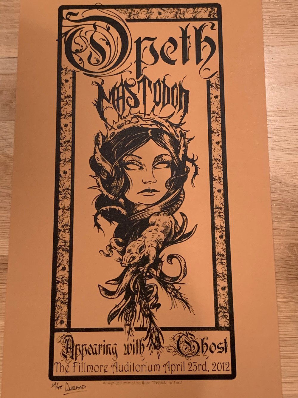 Opeth / Mastodon / Ghost Brown Silkscreen Concert Poster By Ryan Willard, Signed & Numbered