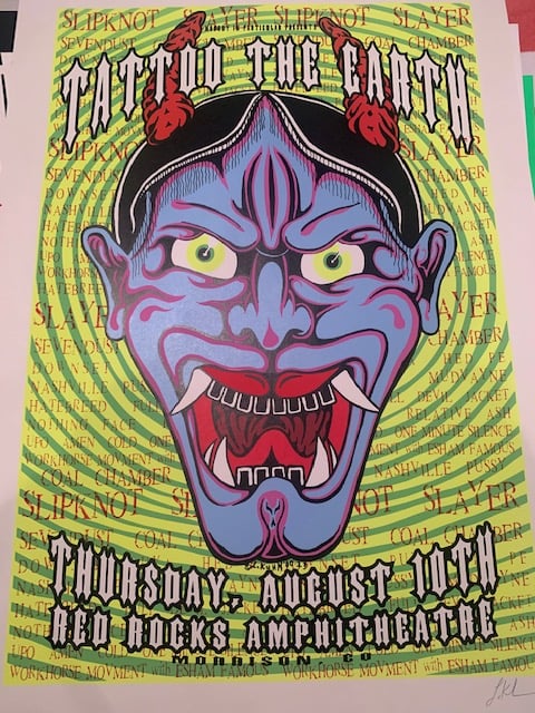 Tattoo The Earth - Slayer / Slipknot Silkscreen Concert Poster By Lindsey Kuhn, Signed By The Artist